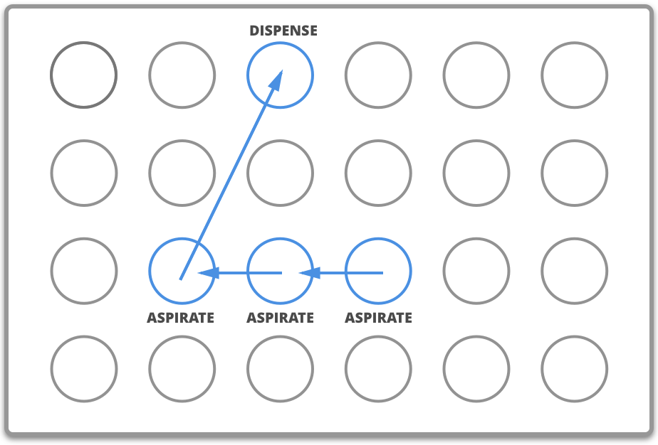 consolidate() and consolidate_with_liquid_class() aspirate multiple times in a row, and then dispense as few times as possible in the destination well. Their overall pattern is:
