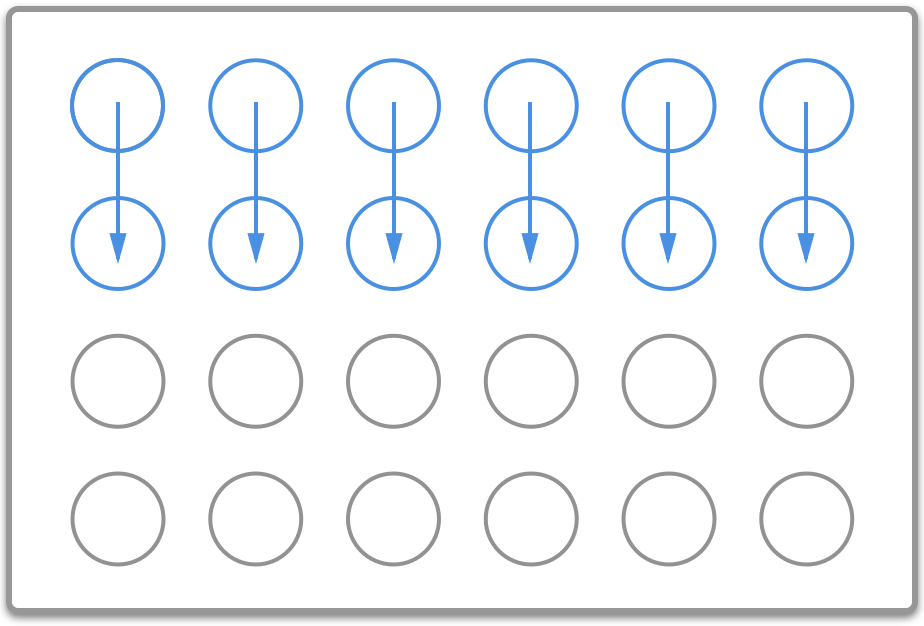 Finally, be aware of the ordering of source and destination lists when constructing them with well accessor methods. For example, at first glance this code may appear to take liquid from each well in the first row of a plate and move it to each of the other wells in the same column: